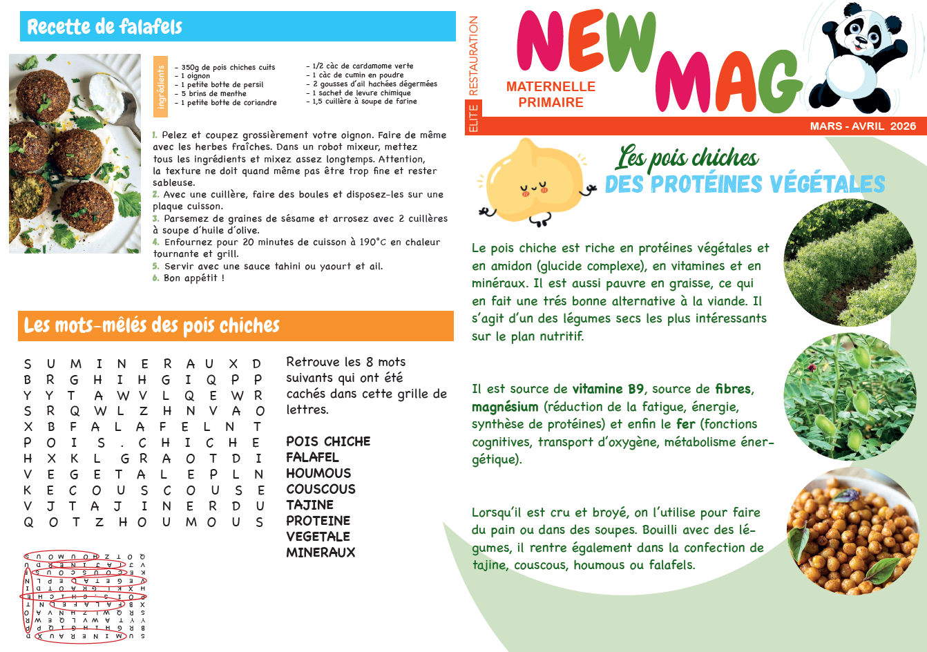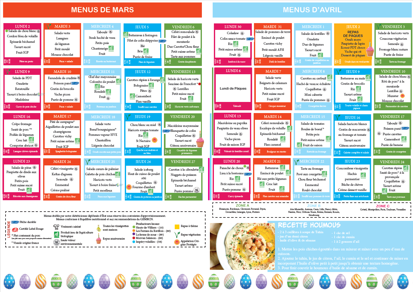 Menus des mois de Mars et Avril 2026